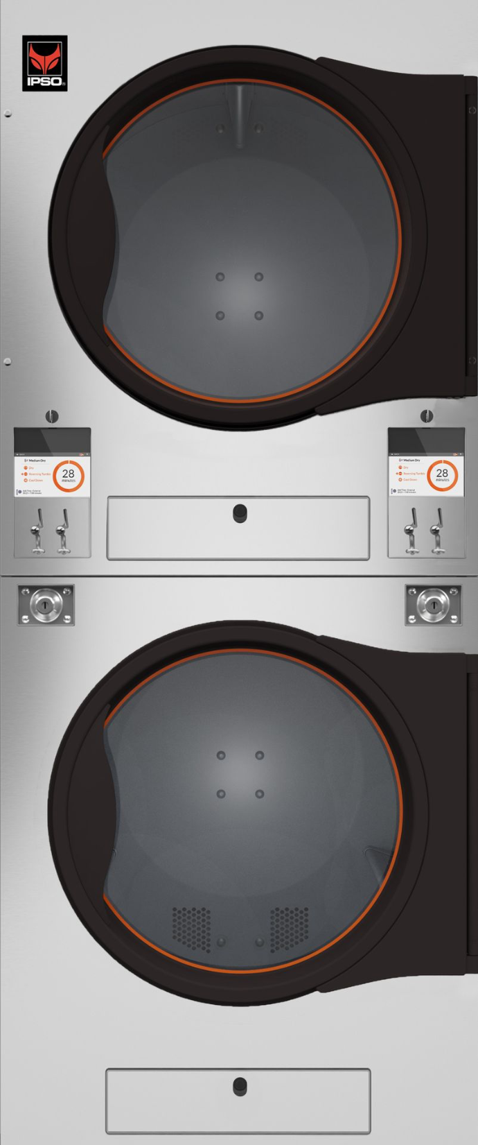 Mesin pengering stacked tumbler dengan variasi kapasitas cocok untuk profesional Laundromat.